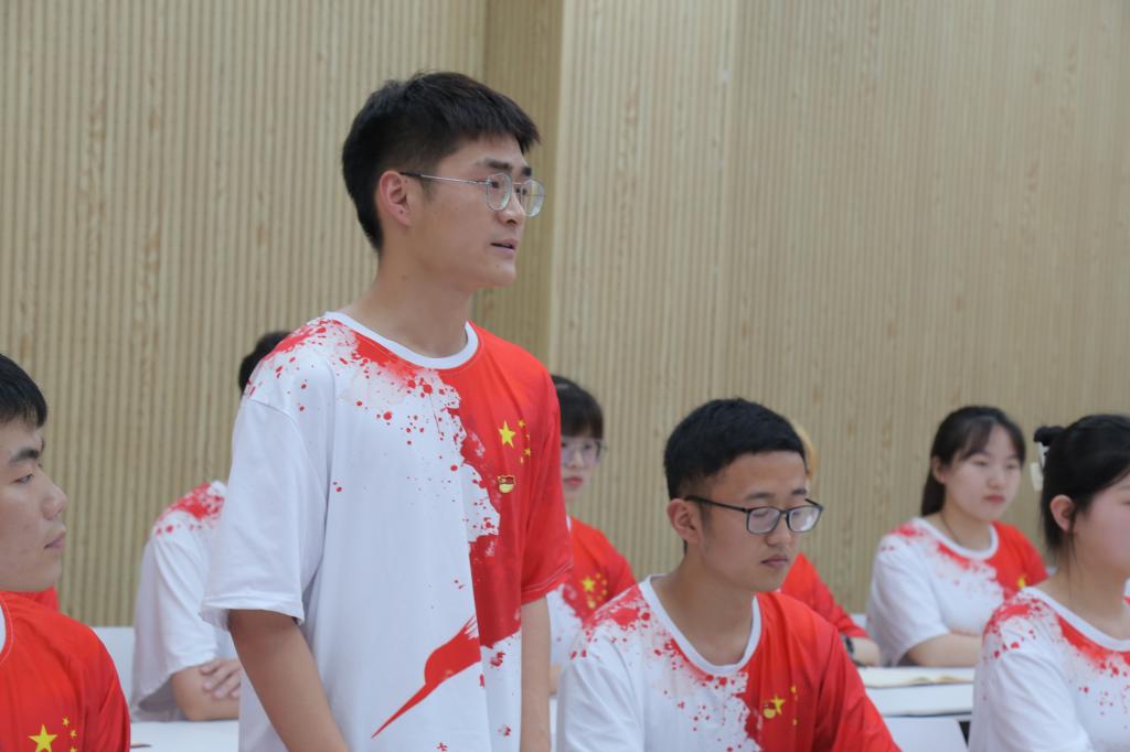 活动在庄严的国歌声中拉开帷幕。班主任吴浩老师讲述微团课《时光机里的爱国主义》,他以旧民主主义革命、新民主主义革命、社会主义建设、改革开放和中国特色社会主义新时代为时间轴,带领同学们从历史发展长河中寻找爱国主义在不同历史时期的具体内涵,坚定了同学们永远跟党走,为党的事业奋斗终生的信念。团支部副书记郭佳介绍了班级团支部建设情况。团员代表结合大别山英雄事迹踊跃发言。团支部组织委员刘倩分享了被誉为“大别山劲松”的刘名榜的故事,号召广大青年团员将个人理想与国家前途、民族命运和人民幸福联系在一起,做无愧于这个伟大时代的有为青年。青年志愿者协会会长袁乾赫讲述了女烈士晏春山的英雄事迹,表示作为志愿服务类社团的负责人,今后将弘扬“团结、友爱、奉献、进步”的志愿者精神,在奉献中提升人生高度,用青春之我,铸就青春之中国。团支部书记李保庆分享了王树声的革命故事,表示作为最年轻的一代共产党人,要牢记习近平总书记的嘱托大力发扬红色传统、传承红色基因,赓续共产党人精神血脉,把刻苦学习、报效祖国当做自己的责任和使命,把爱国热情转化为刻苦学习的实际行动。校团委新媒体中心风向标负责人武毅斌讲述了“虎将军”徐海东的故事,表示作为校园媒体人,要坚守新闻媒体第一线,服务公司大局,努力创造出有思想、有温度、有品质的新媒体作品,进一步讲好师院故事,传递师院声音。即将赴汉阳大学学习的职工代表李航和李金阳,分别讲述了红二十五军军长吴焕先和“忠孝虎将”许世友的故事,他们表示在未来几年的职工活中,将坚守爱国主义精神、矢志刻苦学习、奋力创新创造,时刻铭记中国公民和中国共产党人身份,做到越出国越爱国,越比较越自信,当学成归来,坚决为国家和人民贡献自己的一切!