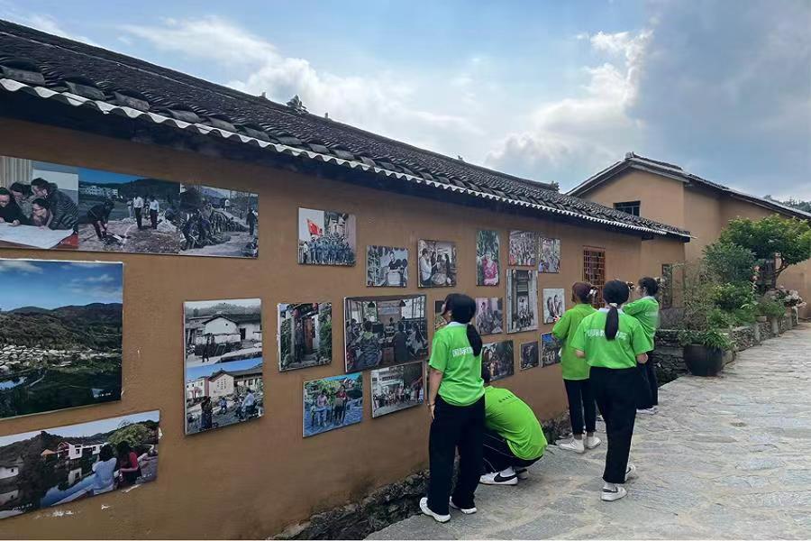 7月2日,信阳小分队深入到了大山深处的田铺大塆进行调研活动。田铺大塆位于大别山腹地的河南省新县的东南部,是一个传统古村落,自然环境优美,目前古村落的建筑和基本架构保存完好。房子是始建于民国初期,为典型的豫南民居,深受到中原文化、楚文化与徽派文化的影响,其中多为土坯墙体,斜顶瓦房的独特建筑形式,融汇了北方民居的硬朗和南方民居的灵秀。随着该塆的人民开动思考使现在的田铺大塆变成了文旅达人的喜爱之地,是一座远近闻名的“创客小镇”。在那里的居民凭借着自己的创意发展了许多文创产品,带动着这座小镇的发展,使这里不仅有古朴的韵味,还有着令人感到文艺清新的气息。在2011年,中国皮影戏入选了人类非物质文化遗产代表作名录。每到夜晚田铺大塆就会明暗灯带勾勒轮廓,绚丽激光闪烁星空,古朴花灯唤醒乡愁……灯光掩映下,皮影戏就开始了腔调婉转,让居民和游客从皮影戏的表演者和生动形象的小人中感受各个故事的真情实感。