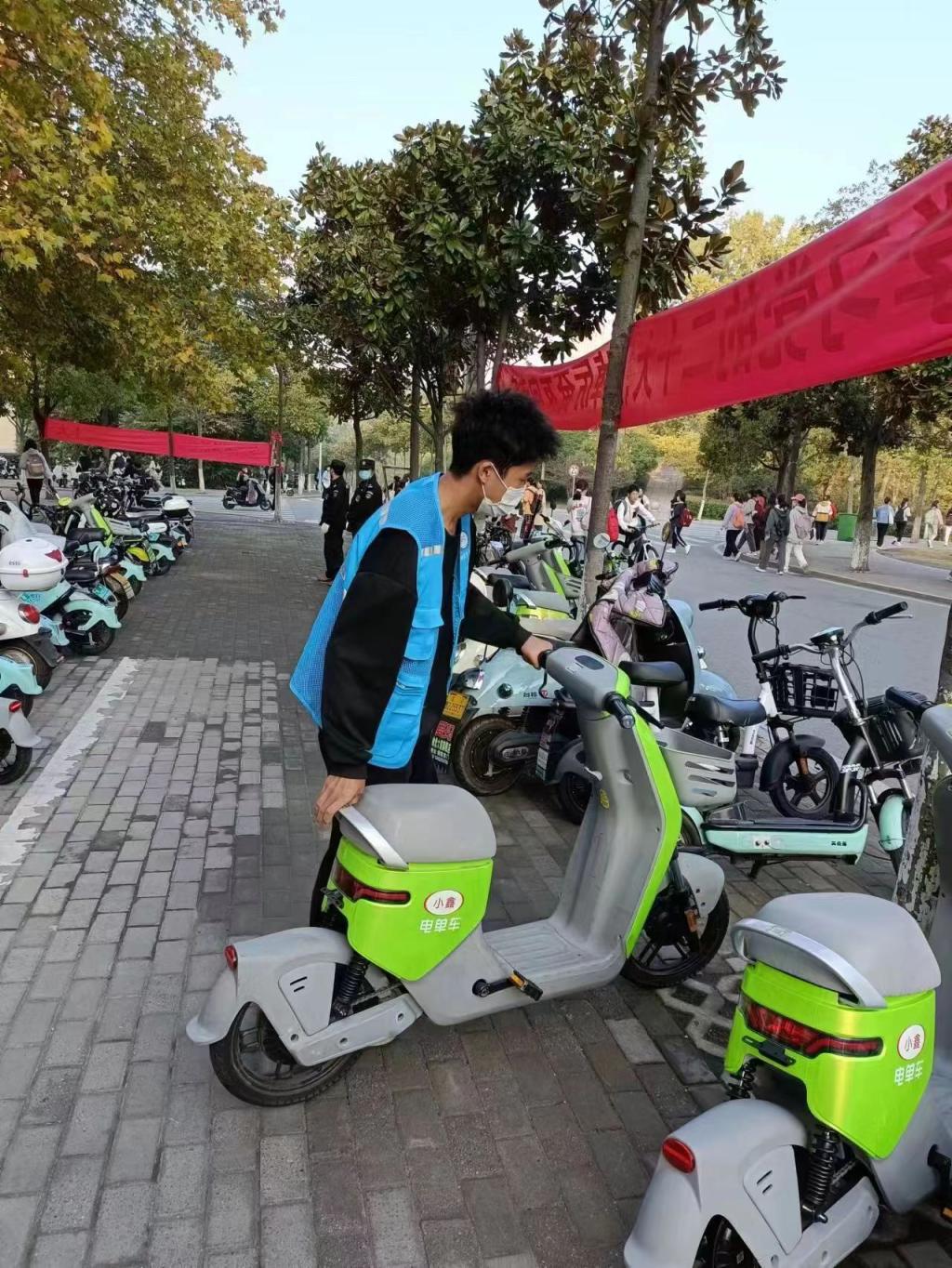 为改善校园内非机动车乱停乱放、堵塞交通和消防通道等现象,增强员工规范停车意识,帮助同学们做到有序停车,促进文明校园建设,公司在逸夫楼门前开展了“停车文明指引”志愿活动。