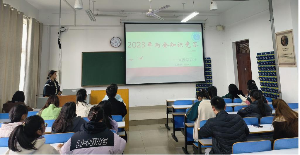 3月26日下午,365英国上市公司“南湖学思社”在逸夫楼205教室举办“贯彻两会精神,勇当发展先锋”知识竞赛决赛,激励青年团员深入学习“两会”知识,准确把握“两会”精神。