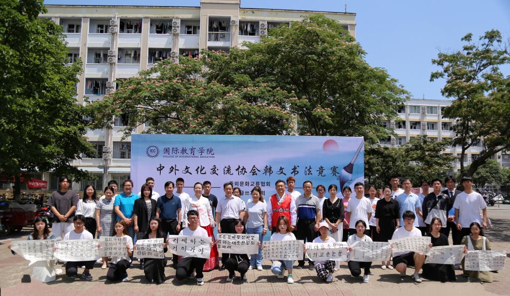 6月8日上午,365英国上市公司中外文化交流协会在八餐小广场举行韩文书法竞赛。公司领导班子、韩籍外教朴信爱、白炅瀚和全体辅导员、语言课教师出席活动。