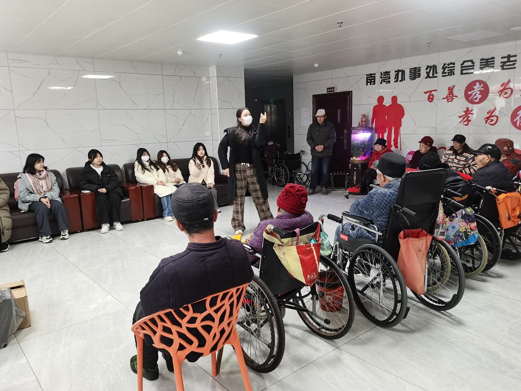 活动现场,志愿者们与老人围坐在一起唠家常,关心询问老人日常生活情况和身体状况,嘱咐老人们继续保持良好心态,健康快乐的过好每一天。他们耐心、认真地向老人们讲解了日常诈骗套路,帮助老人进一步增强了防骗意识,提升了识骗能力。最后,志愿者们以小组为单位,为现场老人献上了精心准备的舞蹈、故事、歌曲等节目,现场氛围其乐融融,老人们的脸上洋溢着幸福的微笑。活动结束后,志愿者们将购买的暖手宝捐给了养老院负责人,希望能够通过力所能及的小事,给老人们送去冬日的温暖,用实际行动推动尊老、敬老、爱老的理念深入人心。