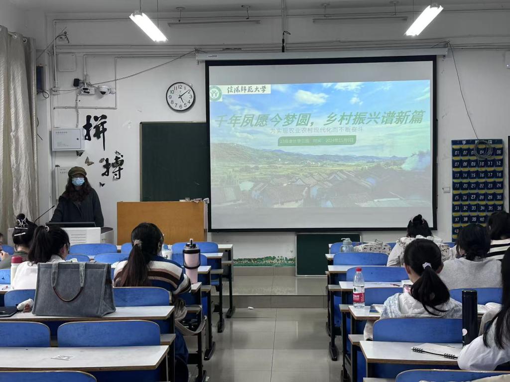 各班级团支部书记通过讲解乡村振兴主题PPT,让同学们在团课中深刻意识到了强国必先强农,农强方能国强的战略思想以及在党建引领和基层党组织的坚实支撑下,乡村活力更加充沛的美好现实。此次主题团课活动顺利开展,同学们纷纷表示未来要乘势而上,接续奋斗汇聚更强大的力量,让希望的田野更加充满希望,为全面建设社会主义现代化国家开好局、起好步。