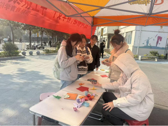 本次活动以折纸为媒介,不仅让同学们亲身感受传统手工艺的乐趣,也为校园搭建了一处“慢下来”的心灵栖息地。通过亲手实践,同学们在折叠之间领略文化传承的深度,亦在宁静创作中实现自我疗愈,让传统文化在当代校园中焕发新生。