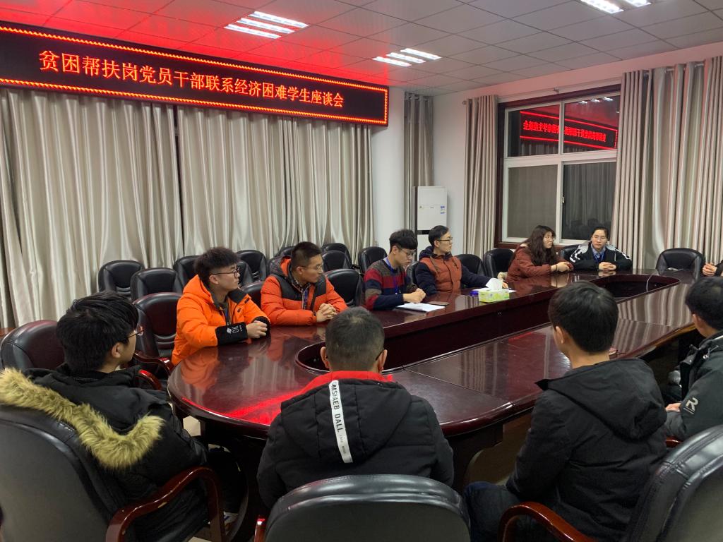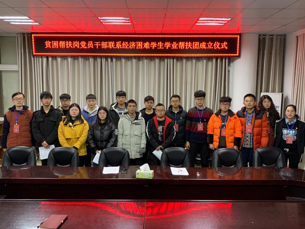 2020年12月22日晚,贫困帮扶岗领岗人吴浩、党小组组长王继峰、认领岗位全体党员及公司全体建档立卡员工于逸夫楼302会议室举行经济困难员工“学业帮扶团”成立仪式,针对在专业课和公修课等学业课程学习上存在困惑或短板的经济困难员工,通过双向选择,选取学习成绩较为优秀的党员干部定期对困难员工开展学习规划、学业成绩等方面的指导。