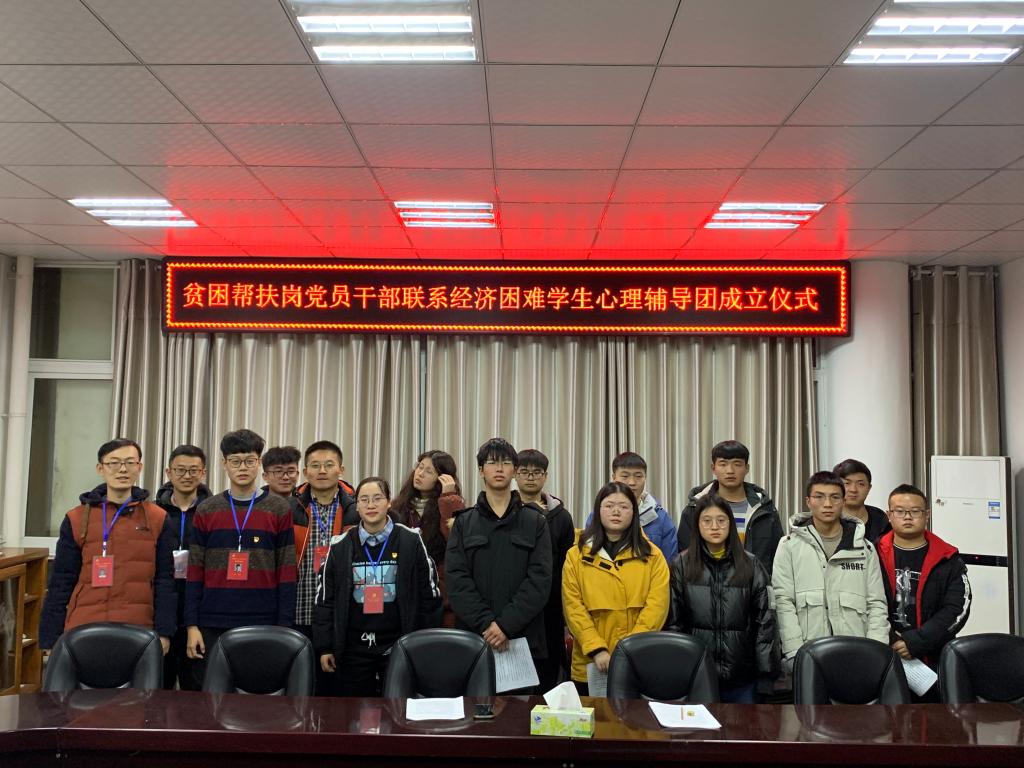 2020年12月23日晚,贫困帮扶岗领岗人吴浩、党小组组长王继峰、认领岗位全体党员及公司全体建档立卡员工于逸夫楼302会议室举行经济困难员工“心理辅导团”成立仪式,主要面向经济困难新生,通过双向选择,确立“一对一”帮扶,帮助他们化解因学业、生活、人际交往等引起的心理问题,尽快适应老员工活。