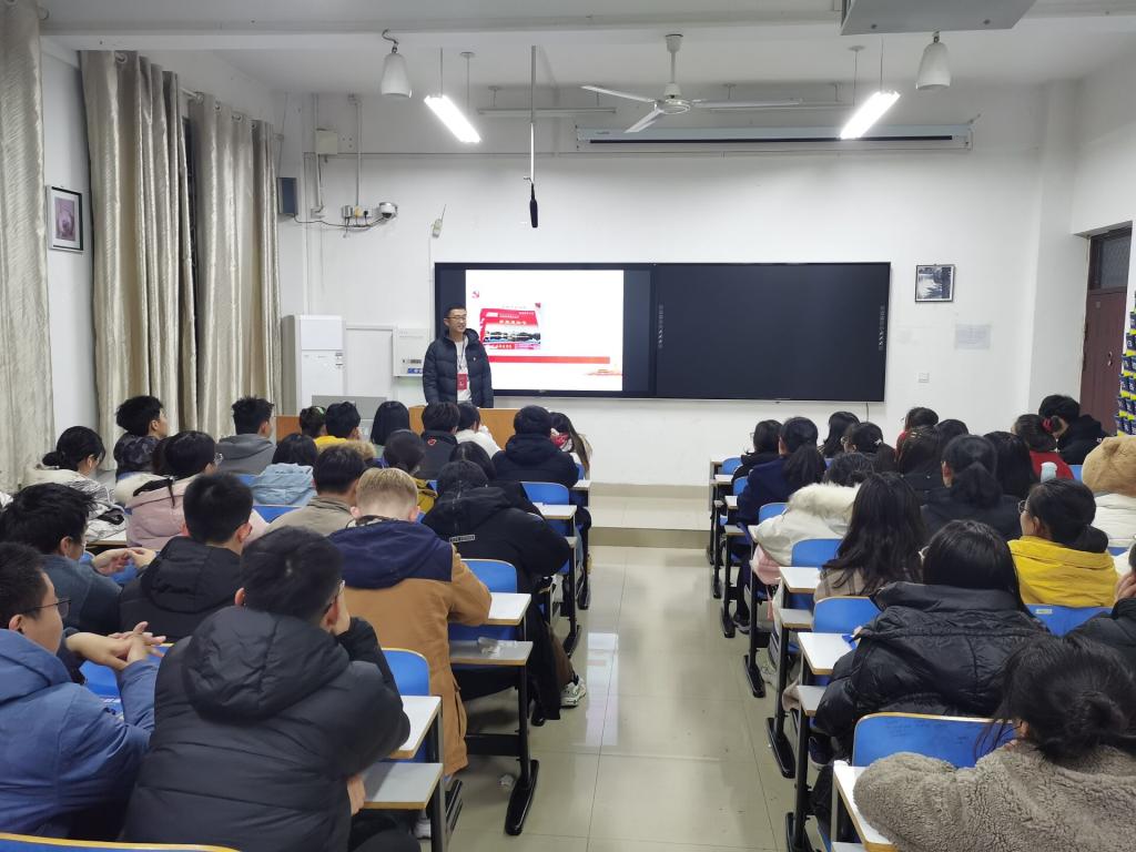2020年12月14日晚,贫困帮扶岗于逸夫楼102教室召开“榜样先锋”学习会,员工先进典型代表、小组成员李保庆在逸夫楼向全体建档立卡员工及2020级部分新生代表做了个人汇报,他从自己的学习、生活、思想三个方面向大家介绍了个人拼搏向上的发展历程,为经济困难员工树立了模范榜样,帮助经济困难员工激发内生动力,明确奋斗目标、坚定理想信念、学会自强自立,用自己的力量成长,用自己的力量战胜挫折。