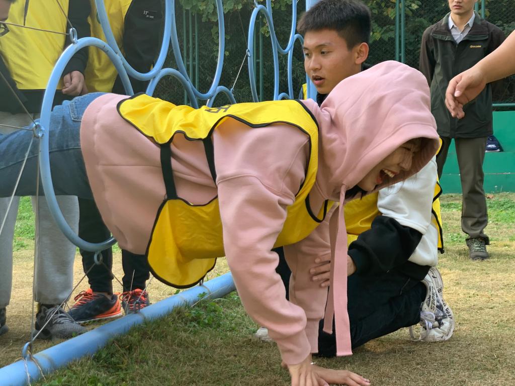 活动伊始,三位老师将队伍分成绿、黄、蓝三组,随后分别向同学们介绍游戏规则和注意事项。在负责老师的带领下,员工依次完成了“模拟电网”、“礼让通行”、“合力制胜”、“毕业墙”、“高空断桥”等项目。游戏过程充满了欢声笑语,每位员工全情投入,群策群力,充分发挥团队协作精神,积极参与其中。