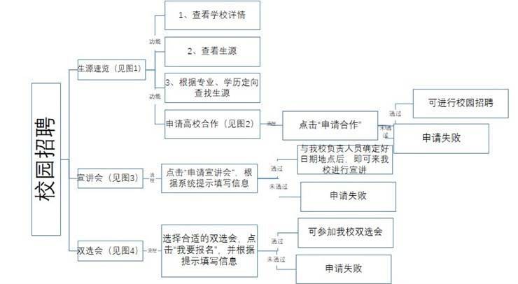 2、企业界面分为“校园招聘”“通知中心”“招聘管理”“企业中心”四大板块。下附前三个板块的详细介绍: