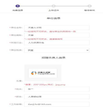 3.根据表格的要求如实填写单位的基本信息和招聘负责人信息。