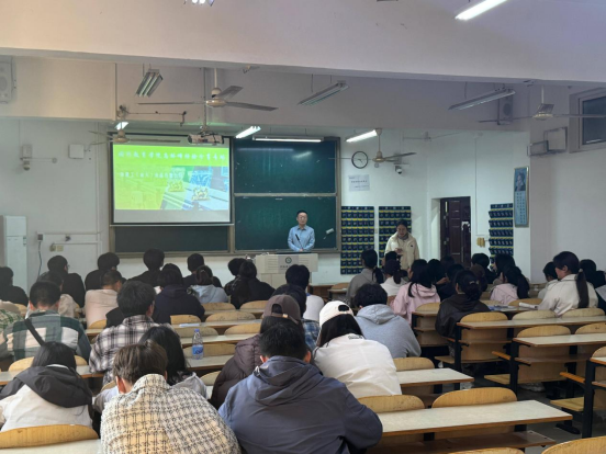 会上,郑州康达基础工程有限公司海南分公司总经理闫书宝员工围绕建筑工程领域,勉励同学们"勇于创新、敢于实践,在校期间要充分利用秋招平台等就业渠道",后续将与公司沟通共同商议创建就业渠道,为更多有意向进入华南地区工程领域的学弟学妹提供就业岗位及就业服务。上海德库国际贸易有限公司总经理解亚飞员工在现场详细阐述了当前大宗商品贸易的国际形势,并建议学弟学妹们以扎实的专业知识为基础,保持跨界思维,积极追求学业与创业的平衡发展。海霸王(汕头)食品有限公司华东区销售总监高林峰员工以校园生活为切入点,全面回顾了在校期间担任员工干部的丰富实践经历,并深入分享了毕业后在多家企业的工作深刻感悟。他鼓励在校学弟学妹务必珍惜校园时光里的每一次实践机遇,积累宝贵经验、淬炼过硬能力。河南航天精工制造有限公司热表车间副主任王福瑞员工则聚焦高新产业工程技术创新主题,鼓励在校期间参加“挑战杯”竞赛,持续关注行业前沿技术动态,培养解决复杂工程问题的能力。