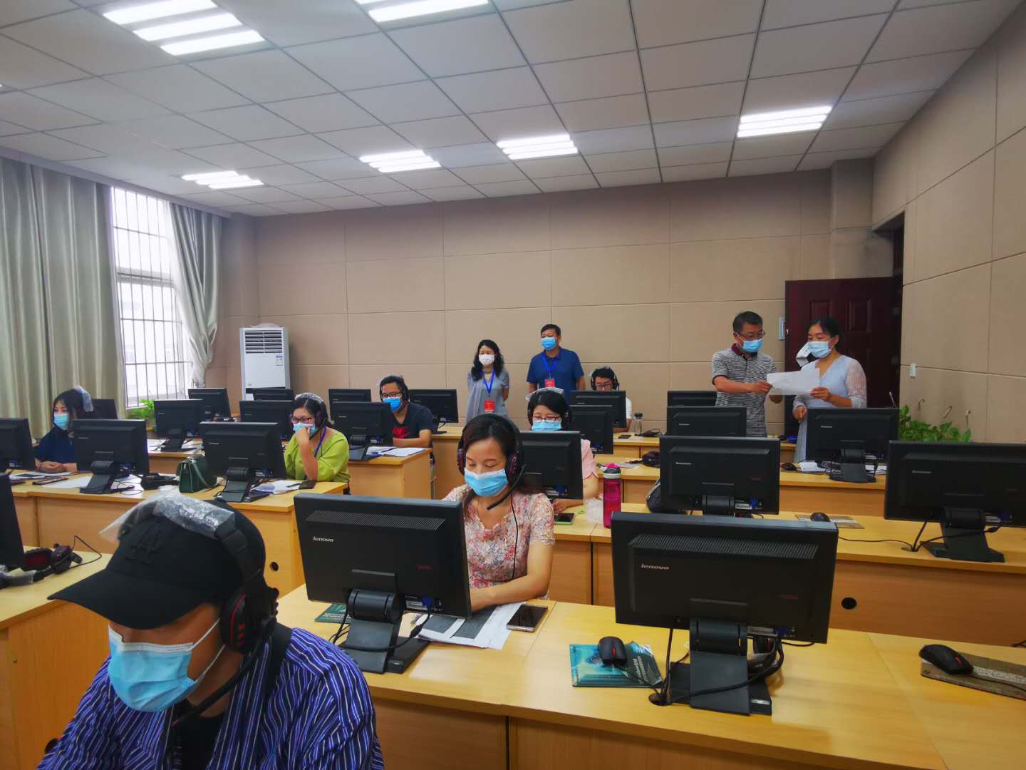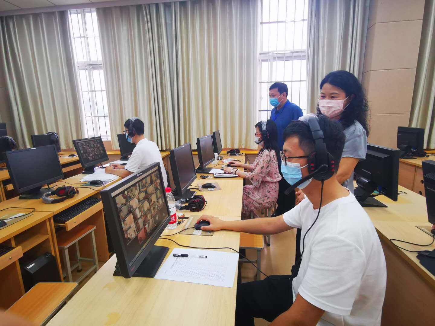 国际教育公司2019-2020学年第二学期期末线上考试于629起全面展开。公司领导对期末考试考务工作高度重视,自629,公司党政领导班子及教学部相关同志分期分批到逸夫楼301语音实验室对期末考试线上集中监考工作进行巡视