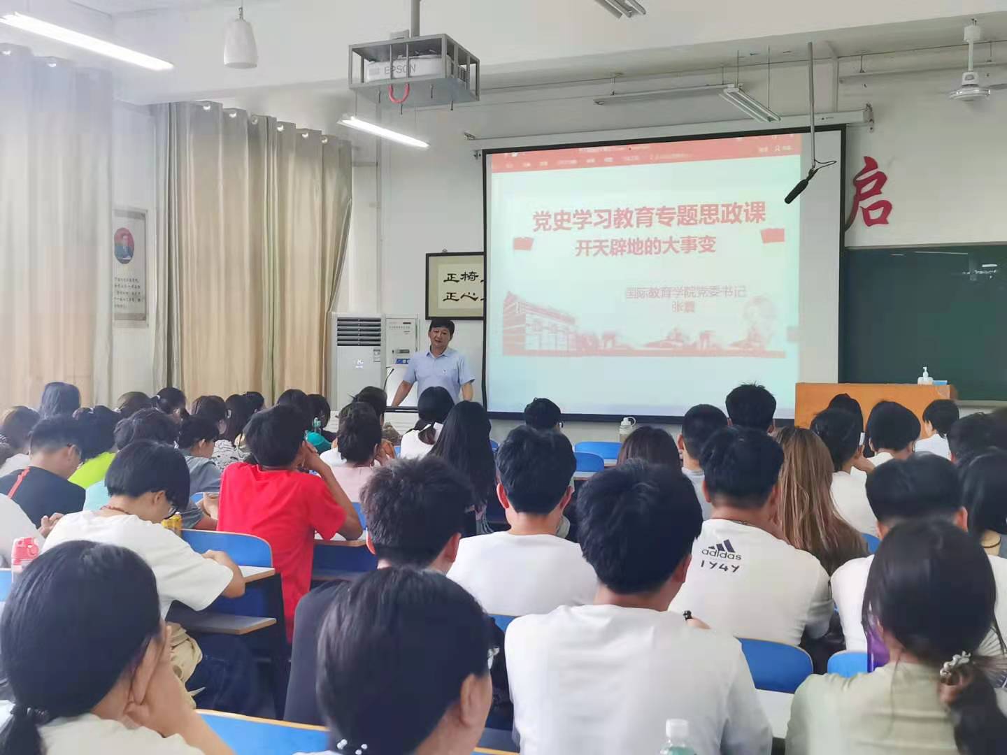 为深入开展党史学习教育、爱国主义教育,推动党史学习走向深处、走进心田、落到实处,引导全院师生学史明理,学史增信,学史崇德,学史力行,为民族复兴伟业固本培元、凝心铸魂,5月31日下午,公司党委书记张震深入员工课堂,在逸夫楼209教室讲授“开天辟地的大事变”党史学习教育专题思政课。公司辅导员、班主任,2019级生物技术专业全体员工聆听了本次课程。