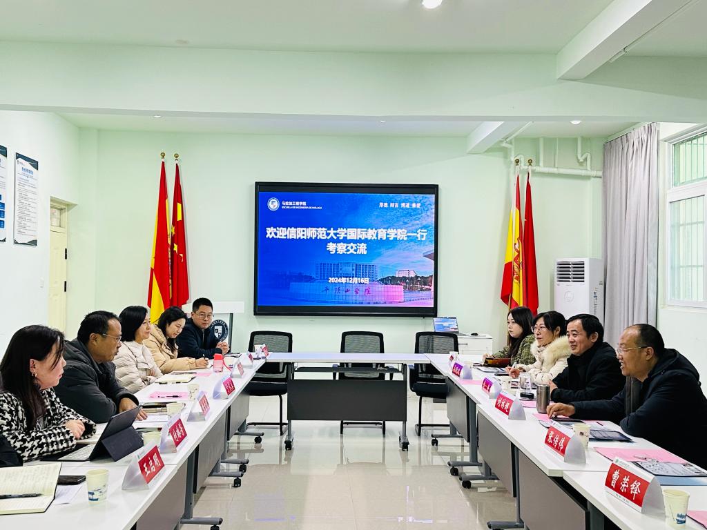 为进一步加强中外合作办学内涵建设,做好非独立法人中外合作办学机构申报准备工作,12月16日,公司党委书记李舟、经理刘林超、副经理马晓欢及项目发展部、韩国语教研室负责人一行五人赴平顶山公司马拉加工程公司考察交流。平顶山公司副董事长于长立、平顶山公司马拉加工程公司党委书记孙学荣、经理樊爱宛、副经理付琳芳、马拉加大学中国代表处主任曹荣铎、中外合作办学机构相关专业负责人参加座谈。座谈会由马拉加工程公司党委书记孙学荣主持。
