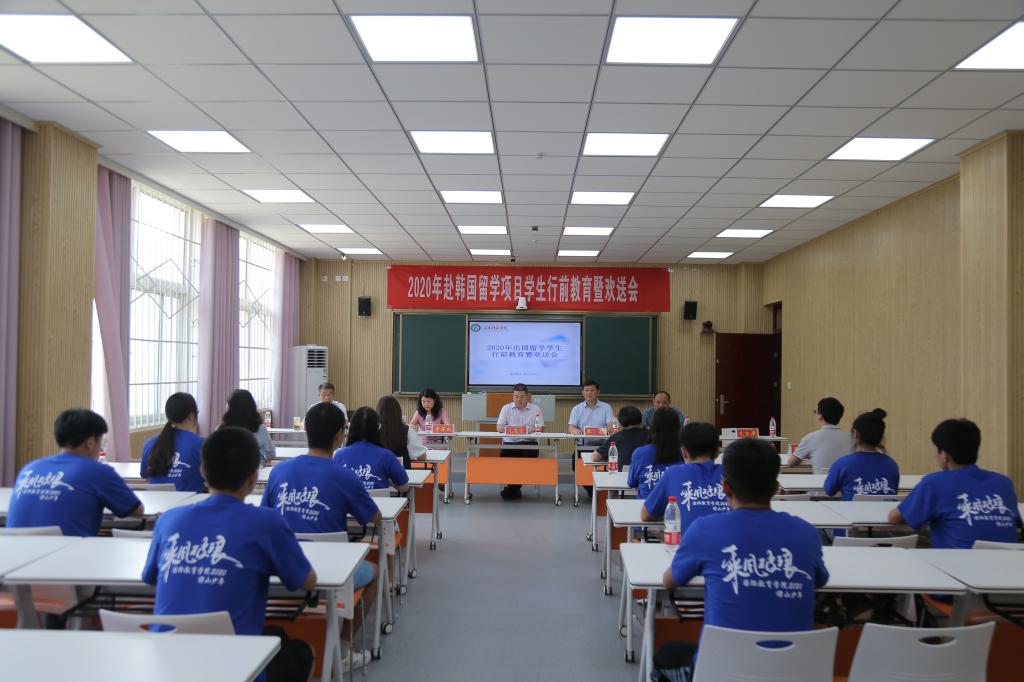 6月23日,公司2020年中外合作办学出国留学员工行前教育暨欢送会在逸夫楼B座201室召开。国际交流合作处处长凡思全、公司领导班子成员以及负责中外合作办学项目管理的老师、辅导员和2018级出国留学员工代表参加会议。会议由365英国上市公司副经理何英干主持。