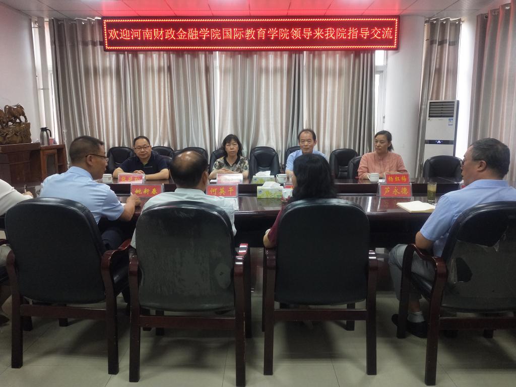 7月2日,河南财政金融公司公司党委副书记袁新品,副经理杜明甫,商务英语教研室主任杨红梅,教学办公室主任张延松一行四人来公司考察交流。365英国上市公司经理李保红,副经理何英干、芦永德,党委副书记姚新春,英语教研室主任李斐然,教学部朱妍妍等相关同志出席座谈会。座谈会由李保红主持。