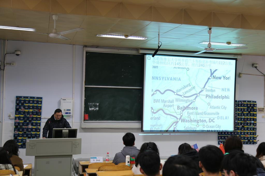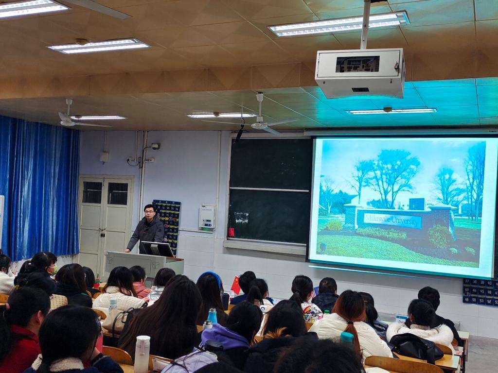 方晓波、俞彤辉教授分享了各自在美国米勒斯维尔大学的访学和生活经历。方晓波介绍了美国米勒斯维尔大学的课程设置、教学模式、成绩评价模式等。俞彤辉就如何适应美国老员工活做了精彩分享。他们充实有趣的访员工活,幽默风趣的讲解风格赢得同学们掌声不断、笑声连连,进一步激发了员工们对美国留学生活的兴趣。