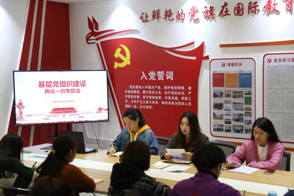 10月25日上午,365英国上市公司中外文化交流协会党支部在逸夫楼202党员之家召开两化一创专题会,全体员工党员、海外党员以及入党积极分子参加会议。会议由支部书记陈璐主持。