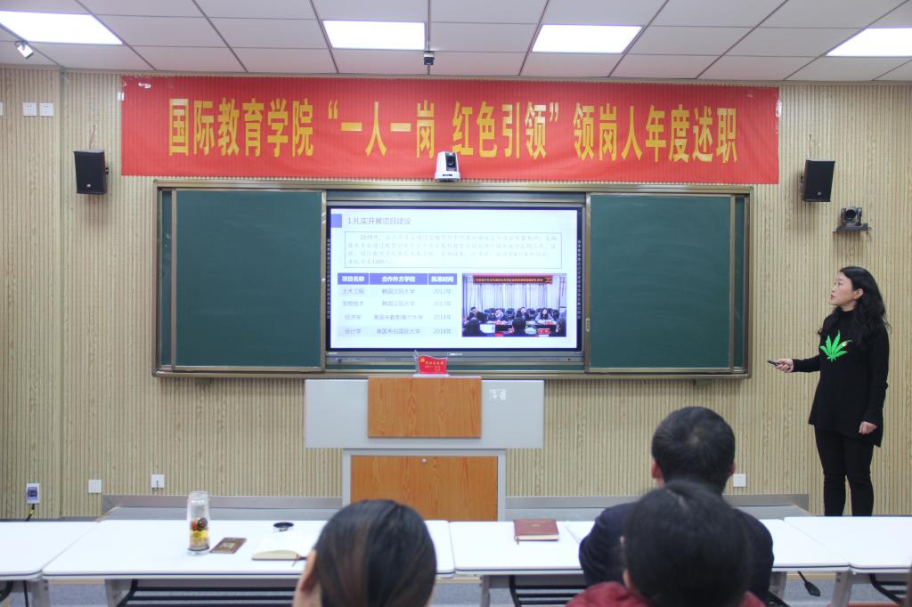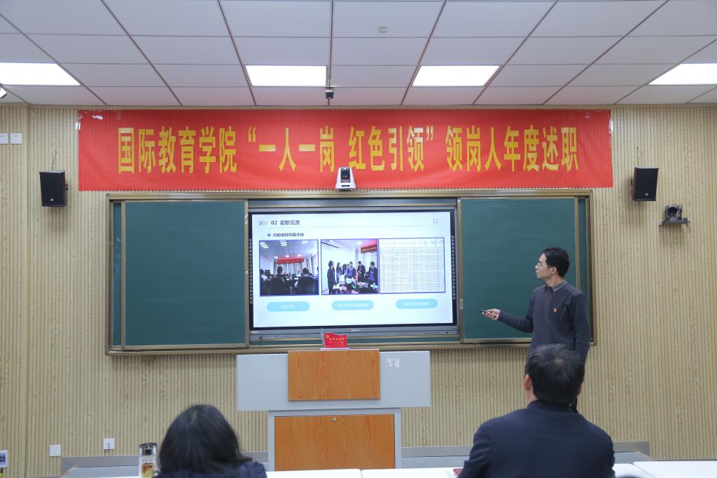 领岗人立足岗位职责逐一向大会进行汇报。党建引领岗领岗人张震围绕党的建设“第一责任人”履职情况、扎实做好巡视整改的“后半篇文章”、牢牢把握意识形态的领导权主动权以及党风廉政建设等工作进行述职;事业发展岗领岗人李保红围绕中外合作办学项目工作、出国留学、国际交流与合作以及人才培养等进行述职;合作交流岗领岗人何英干围绕中外合作办学的深度和广度进行述职;学风建设岗领岗人姚新春围绕厚植爱国情怀、开拓国际视野、强化语言基础以及提升专业素养等进行述职;教学监控岗领岗人郭寻围绕人才培养方案、课程设置、教师选派等教学监控管理工作进行述职;海外联络岗领岗人陈璐围绕海外员工教育管理服务工作进行述职;创新创业岗领岗人竹梅围绕公司创新创业工作开展情况进行述职;志愿服务岗领岗人许孟杨围绕公司志愿服务开展情况进行述职;贫困帮扶岗领岗人吴浩围绕公司资困助学工作进行述职。