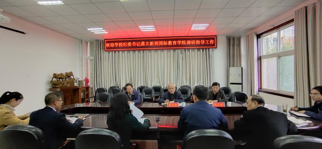 龚立新肯定了国际教育公司在扩大公司开放办学,促进国际交流,推进国际化人才培养等方面取得的成绩。他强调,在深入推进“不忘初心、牢记使命”主题教育中,公司要通过对表对标找差距,全面检视反思,深入调查和整改落实等工作切实破解制约瓶颈,保障事业健康持续发展,为公司高水平师范大学建设提供重要支撑。结合党风廉政建设,他提出十个方面要求:一是学思结合,要加强政治理论知识、业务知识、党史国史综合知识等方面学习,以理论滋养初心,在学思践悟中不断促进事业发展;二是担当尽责,要勇于担当、善于担当、乐于担当,要切实提升敢于担当的精神、善于担当能力和主动担当的境界;三是守正创新,要不断解放思想,以更加开放的办学视野,进一步引进优质教育资源,创新办学模式,加强员工国际交流,提升国际化人才培养水平;四是统揽全局,谋一隅要先谋全局,要树立全局观念,将中外合作办学工作纳入公司整体战略,在健康持续发展中提升服务公司中心工作能力;五是依法行政,要依法办学,加强制度建设,要做制度执行的表率,带动广大师生自觉尊崇制度、严格执行制度、坚决维护制度。六是心系群众,要深入群众,主动关心群众,不断增强教职工归属感、荣誉感和认同感,充分激发教职工干事创业热情;七是狠抓落实,要保持定力抓落实,精准精细抓落实,强化统筹抓落实,坚决把既定部署落实到位,真正把每个细节落实到位;八是团结协作,团结就是战斗力,要着力建设坚强有力的领导班子,形成整体合力,发挥整体功能,促进事业又好又快发展;九是狠抓队伍建设,要注重思想建设、能力建设,努力造就一支热爱中外合作办学事业、精通外事业务的职业型、专家型干部队伍。十是廉洁自律,党风廉政建设永远在路上,要提高思想认识,牢树红线意识、底线意识和规矩意识,坚守初心使命,通过主题教育的高质量开展积极营造良好的事业发展环境。