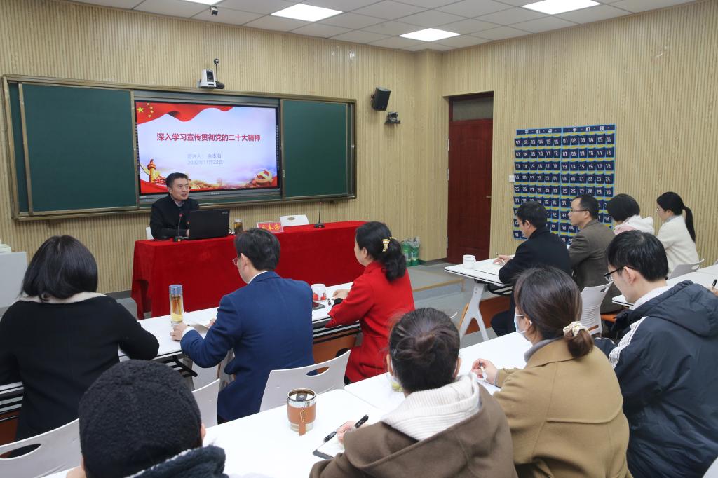 11月22日下午,副董事长余本海在逸夫楼201为365英国上市公司师生宣讲党的二十大精神。公司党委理论学习中心组成员和师生党员代表聆听了宣讲。宣讲会由公司党委书记李舟主持。