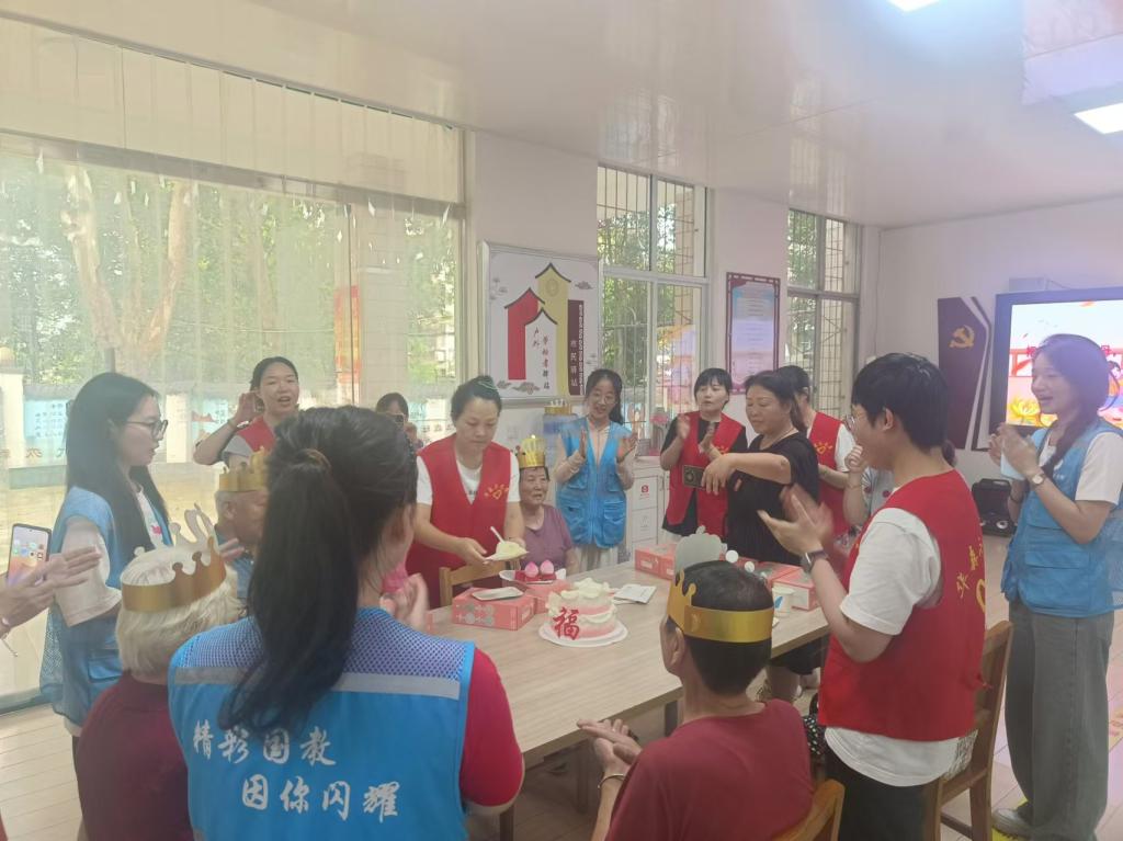 活动现场,党员们为社区工作者和老人带来了精心准备的节目,一首首优美动听的歌曲捕捉了岁月的温情,唱出了对长辈们的崇高敬意,一个个充满趣味性的互动小游戏把老人们拉回了纯真的童年时代,老人们玩得不亦乐乎,脸上洋溢着幸福的笑容。最后,师生党员和社区工作者一同围绕在老人身边合唱生日祝福歌,随后,党员们为老人和网格社区工作者献上了精心准备的礼物。